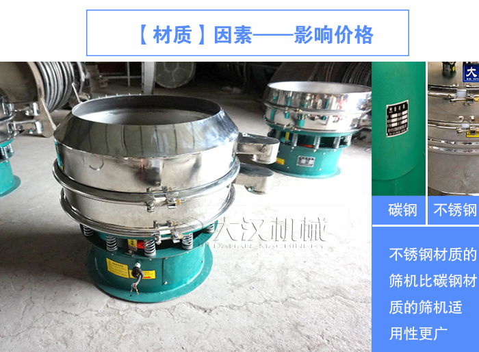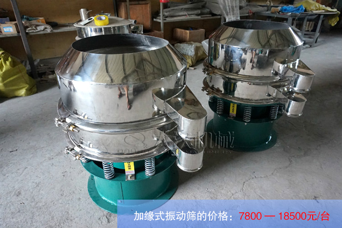 加緣式振動(dòng)篩是在普通振動(dòng)篩基礎(chǔ)上加強(qiáng)包邊,增大進(jìn)料口直徑,為特殊篩分物料而設(shè)計(jì)的,所以相比普通振動(dòng)篩價(jià)格會(huì)稍微貴一點(diǎn),具體如下: