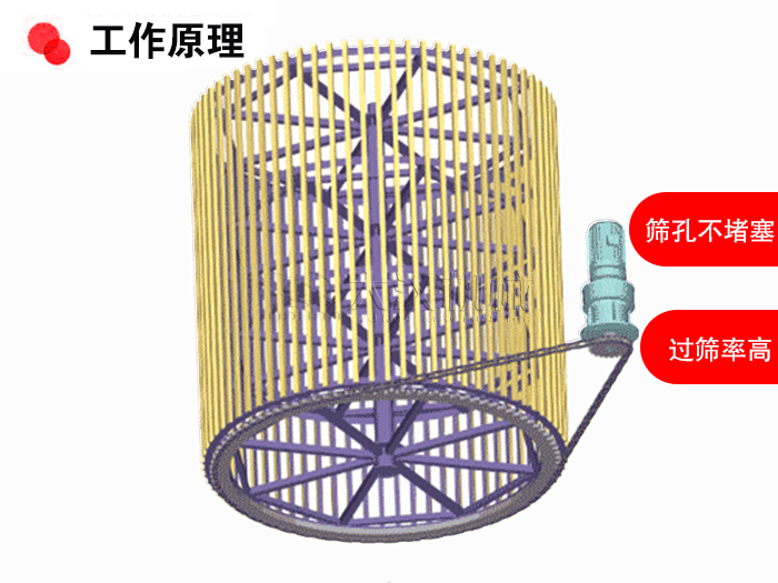 其核心的篩分系統采用攪拌機的攪拌原理,原料在攪拌筒內受連續翻滾、推擠及物料間相 互摩擦作用,作用強烈可靠性高。