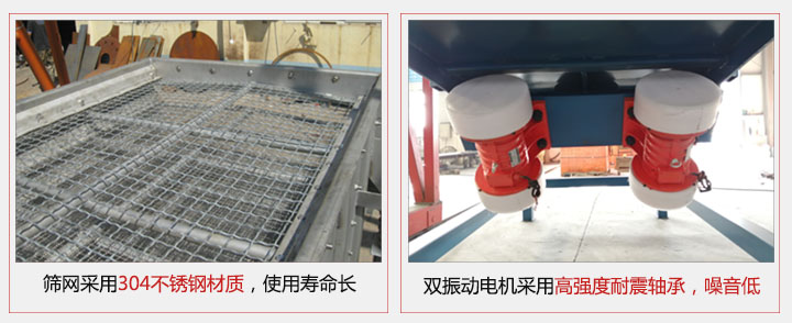 2,雙振動電機采用高強度耐震鑄鐵軸承,使用壽命長,噪音低,易保養。