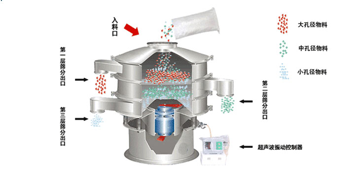 超聲波篩分機(jī)使用智能振動(dòng)超聲控制器,改變了單一頻率帶來不適應(yīng)性和不可調(diào)性,振動(dòng)篩振頻每秒1460次,超聲波每秒3.6萬次,在振動(dòng)超聲控制器的控制下,實(shí)現(xiàn)物料的篩分目的。