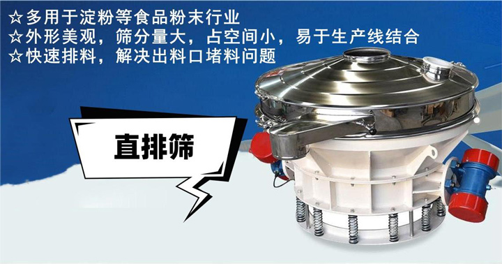 淀粉專用直排篩是大漢公司經過多年制造經驗并結合專業的振動力學原理開發研制的多功能、高效率篩分設備。淀粉專用直排篩也叫直排式振動篩,分單振源和雙振源兩種,單振源作用到物料上主要產生上下振動,不具備自動排料功能,雙振源能在篩面上產生渦旋運動,具有自動排料功能,主要用于粉體生產線工藝流程中的粉體的除雜,篩分作用。