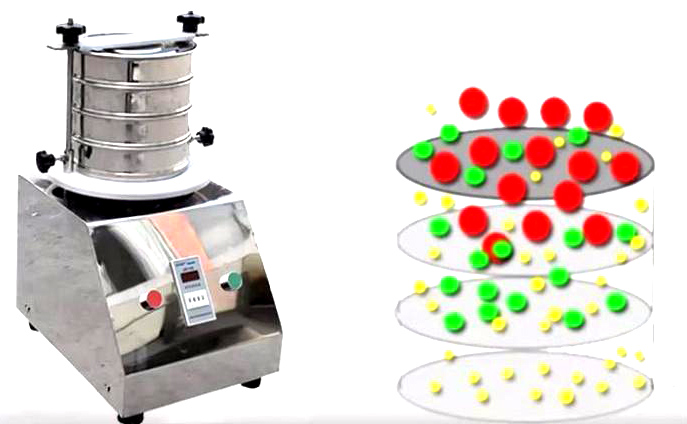 篩分過程:顆粒在振動作用下通過篩網,根據顆粒大小分為不同粒度級別,小顆粒通過篩孔落入下方容器,大顆粒留在篩網表面。